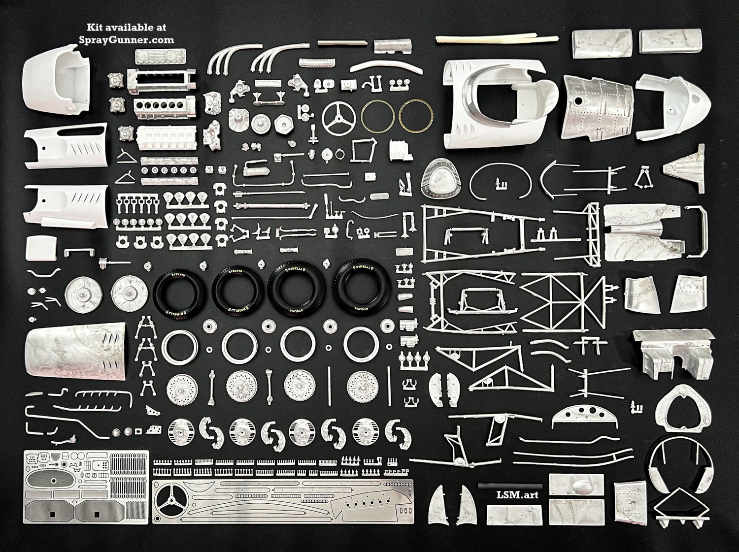 How do you create something that is worthy to be a book cover? For our in-house artist Nestor Espinoza, it all starts with a passion. With love not only for fast and stylish race cars, but for the Legends behind them. In this particular case, it's about imagining what racer Juan Manuel Fangio must've heard when he started this car. What he felt when he sat behind the steering wheel in a leather seat with no safety harness. When he touched the controls. What hundreds of spectators saw when the car was throwing up the dirt in front of them, ripping the road surface with its narrow tires. This model completed on such a high level, that you can almost smell the original car when you look at it in-person. We took those quality pictures for you to enjoy this experience from a convenience of your mobile device.